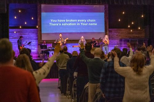 The Saturday night service meets in the gym, which has a casual atmosphere. The worship is band-driven.