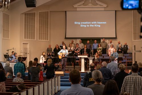The Sunday morning service meet in the worship center, which has a traditional, Colonial feel. The worship combines choir, orchestra, and band elements.